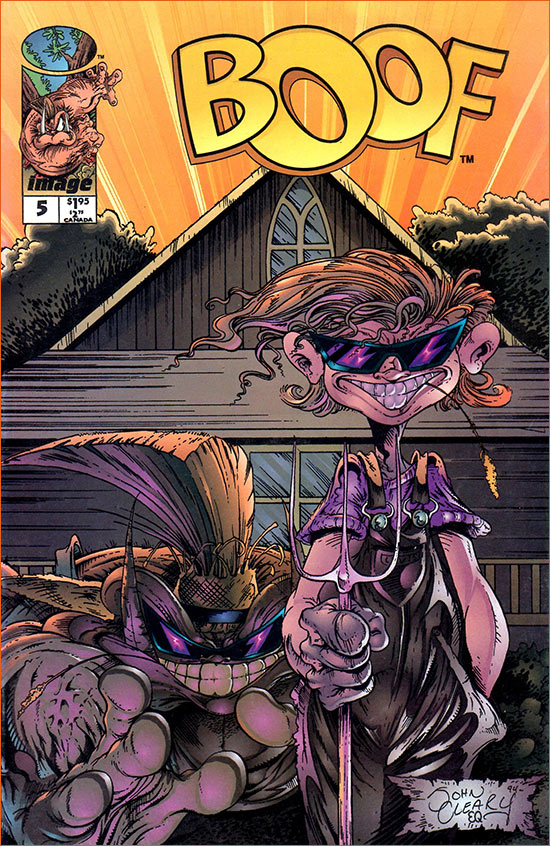 Dans le comic book Boof #5 - "Farmin' And Charmin'" (Cleary et Smith • Image Comics) John Cleary pastiche la toile American Gothic de Grant Wood sur la couverture alternative de sa BD. Ici, la fermière devient Boof et le fermier est remplacé par Nick.