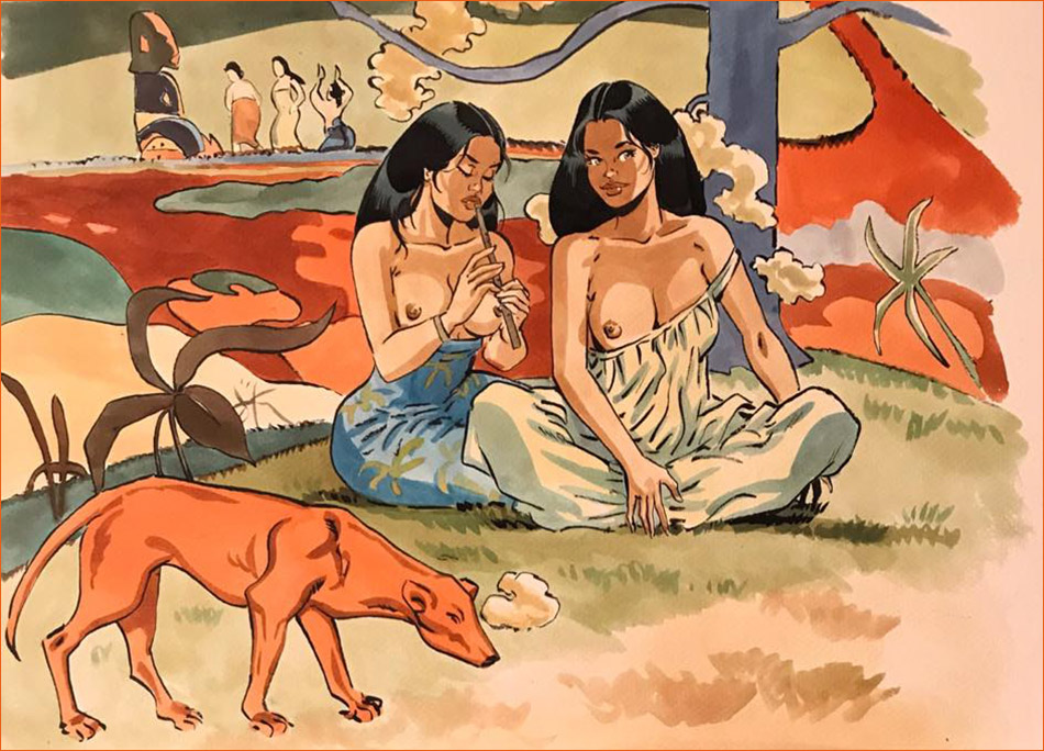 Dans l'artbook Détours au musée (Meynet • Fabard Edition) Félix Meynet pastiche le tableau Arearea aussi appelé Joyeusetés de Paul Gauguin sur une planche de sa BD. Ici, je trouve que les deux tahitiennes ont des faux airs d'Uma de la série BD Les Eternels (Meynet et Yann • Dargaud).