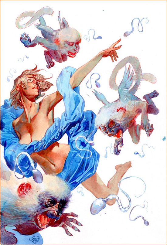 Yorick Brown, le héros de ce comics, est un jeune américain artiste de l'évasion, chômeur et amoureux d'une splendide blonde partie en voyage universitaire en Australie. Le 17 juillet 2002, au moment où il se décide à la demander en mariage au téléphone, tous les porteurs du chromosome Y de la planète meurent, à l'exception de Yorick. Il doit désormais survivre, à la recherche d'une explication, alors que les femmes se réorganisent pour vivre sans les hommes. Le héros se retrouve ainsi isolé dans un monde gouverné par les femmes. Il cherche à découvrir l'origine du fléau, avec l'aide de l'agent 355 du Culper Ring, une agence gouvernementale secrète, du Dr Mann, biologiste, spécialiste du clonage humain, et d'Esperluette, son petit singe malicieux. Cette série de comics est vraiment excellente, et je t'invite vivement à la lire.