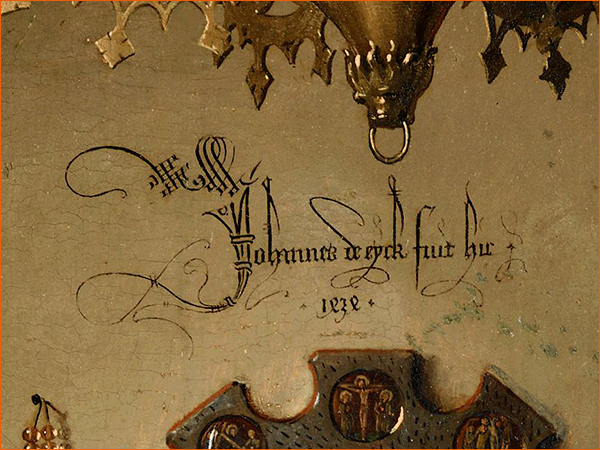 Détails du tableau Les époux Arnolfini de Jan van Eyck (1434).