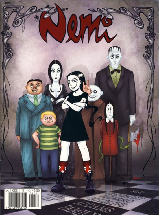 Dans la BD norvégienne Nemi #87 (Myhre • Egmont) Lise Myhre parodie l'affiche du film La Famille Addams de Barry Sonnenfeld sur la couverture de sa BD. Ici, Nemi Montoya se tape l'incruste au beau milieu de la famille Addams.