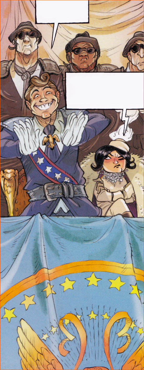 Dans Ekhö monde miroir - Tome 3 - "Hollywood boulevard" (Barbucci et Arleston • Soleil) Alessandro Barbucci croque Jackie Kennedy et lui donne le rôle de l'épouse du gouverneur de la Californie, un certain Jack.