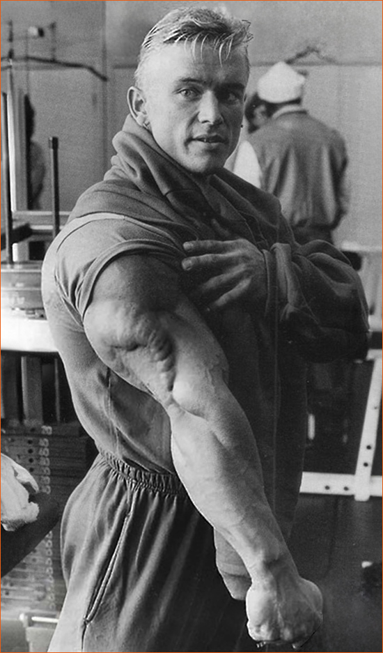 Lee Andrew McCutcheon dit Lee Priest (1972). Un Australien d'à peine 1m63 qui débarquait sur scène avec une masse musculaire si dense et des bras si démesurés qu'il en devenait presque une illusion d'optique. Surnommé "The Blond Myth", Lee Priest est l'une des figures les plus fascinantes, talentueuses et... controversées de l'histoire de ce sport.
