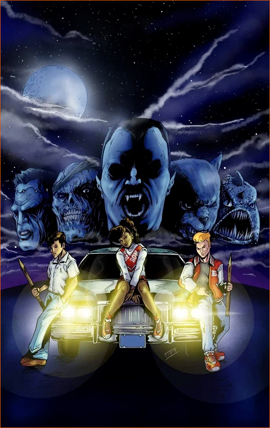 Le pitch ? On commence par Van Helsing qui rate sa chasse au Dracula en 1887. Un bond de 100 ans et hop, nous voilà auprès d'une bande de nerds mordus de créatures et de films d'horreur, confrontés à une invasion de monstres bien réels (Dracula, Frankenstein, le Loup-Garou, la Momie et le Gillman ou la créature du lac Noir - oui oui, la totale !). Leur mission: sauver la ville (et le monde, rien que ça) munis de leur ingéniosité d'ados et d'un amour immodéré du cinéma d'épouvante. Le scénario a le bon goût d'associer l'effroi jubilatoire à la camaraderie, même si on y trouve quelques écarts de langage d'époque et une tonalité pas toujours très politiquement correcte au regard des standards actuels.