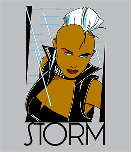 Avec la sortie du film X-Men: Le commencement en 2011, le site de vente WeLoveFine et ses Mighty Fine Artist avaient sorti une collection de quatre T-Shirt intitulé The Ladies of X-Men Go '80s à la sauce Patrick Nagel. Le troisième imprimé s'intitule The Ladies of X-Men Go '80s: Storm. Ici, la femme de l'illustration de Patrick Nagel est remplacée par Ororo Munroe alias Storm (Tornade en VF).