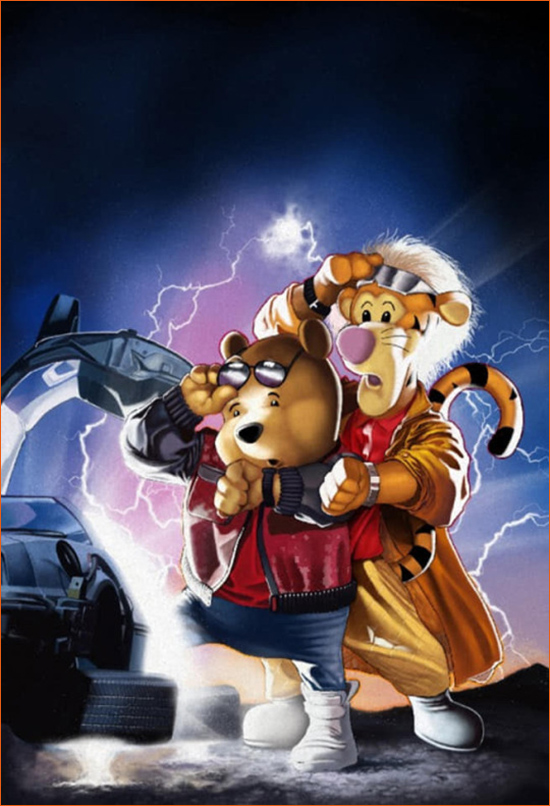 Dans le comic book Do you Pooh ? (Mychaels et Sala • Counterpoint) Marat Mychaels parodie l'affiche du film Retour vers le futur II de Robert Zemeckis sur une des nombreuses couvertures alternatives de sa BD. Ici, Ici, Marty McFly interprété par Michael J. Fox est remplacé par DeadPooh, et Dr. Emmett 'Doc' Brown campé par Christopher Lloyd devient Tigrou.