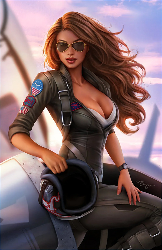 Dans le comic book Grimm Fairy Tales: 2023 May the 4th Cosplay Special #1 - "Red Agent: The Case of What Lies Beyond" (Reyes et Franchini • Zenescope) la cover artist Sun Khamunaki parodie l'affiche du film Top Gun de Tony Scott sur une des couvertures alternatives de la BD. Ici, le lieutenant Peter Mitchell alias Maverick interprété par Tom Cruise est remplacé par Anabelle DiMarco alias Belle.